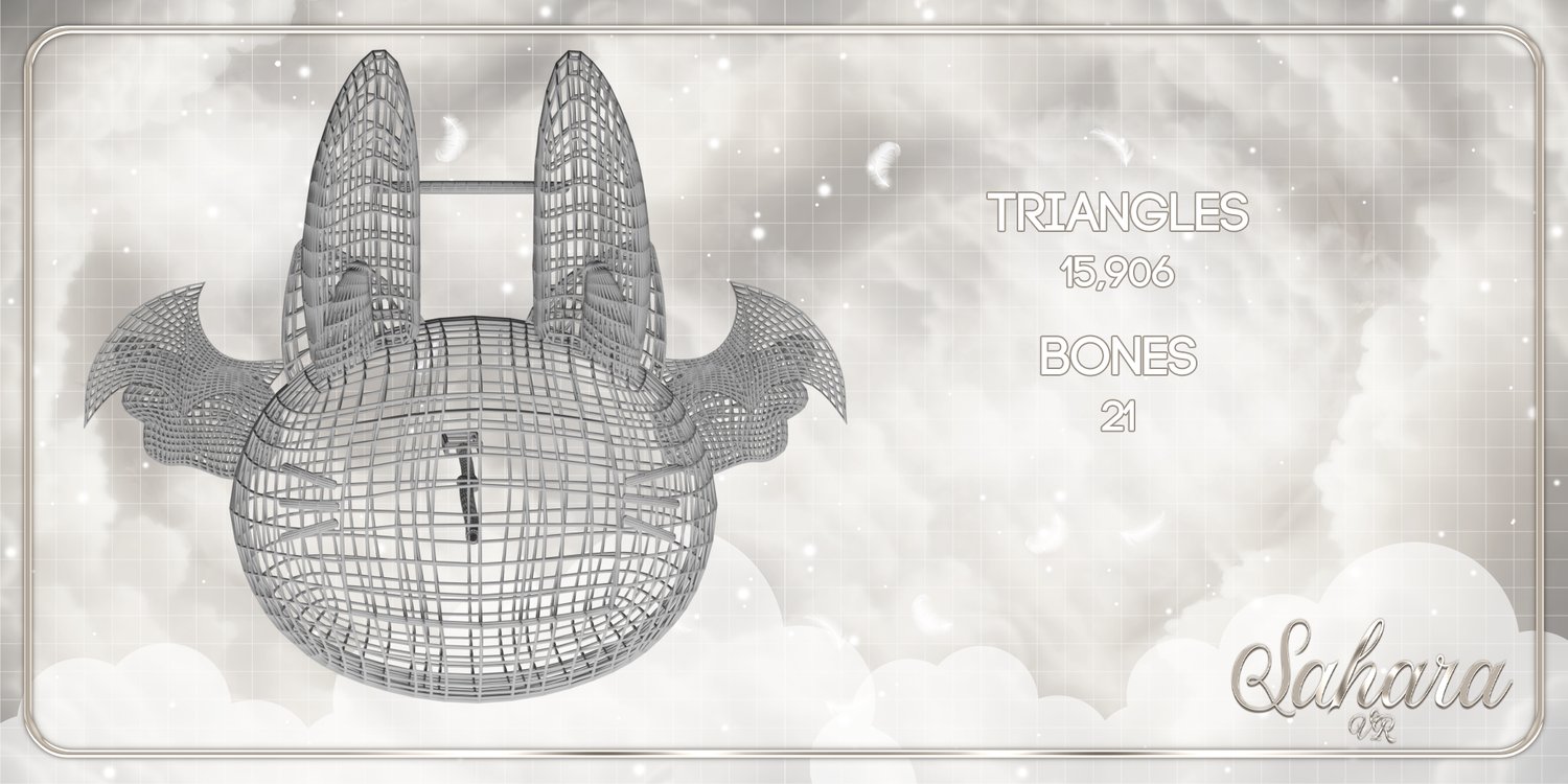 - 10 Blendshapes: Bunny ears, Kitty ears, Horns, Halo, Angel wings, Devil wings, Whiskers, Blush, Halo adjustment for bunny ears